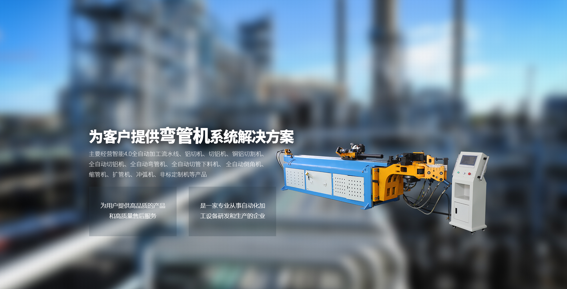 主要經營智能4.0全自動加工流水線、鋁切機、切鋁機、銅鋁切割機、全自動切鋁機、全自動彎管機、全自動切管下料機、 全自動倒角機、縮管機、擴管機、沖弧機、非標定制機等產品